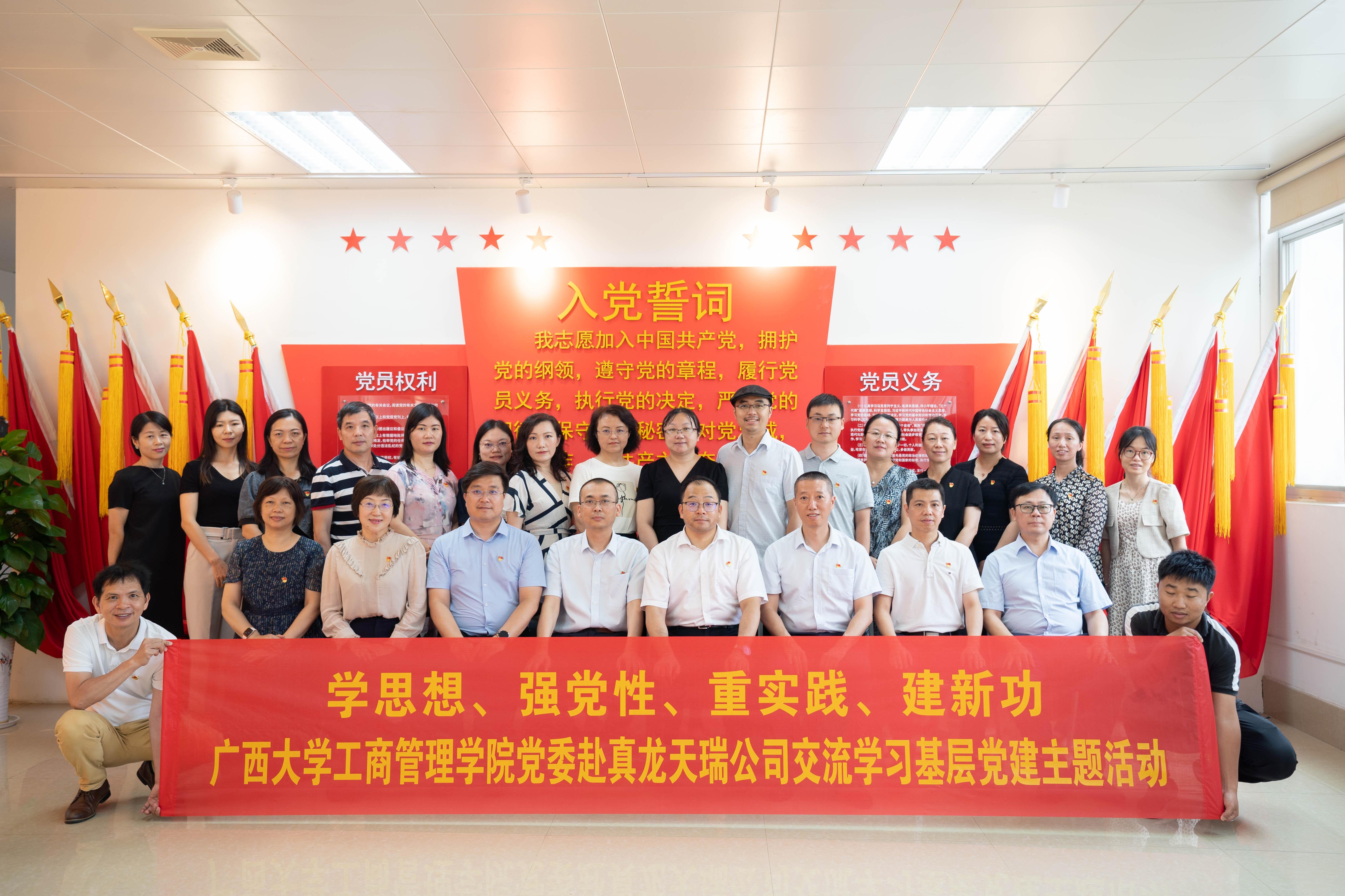龙毅董事长表示,真龙天瑞公司位于南宁高新技术开发区,与XCSport地理位置相近,希望通过互学互助,进一步加强与公司的党建业务交流合作。他本人作为公司EMBA21班的员工,更应做好公司与企业沟通的纽带,助力院企合作,推动党建工作联学共建,促进双方共同提升。