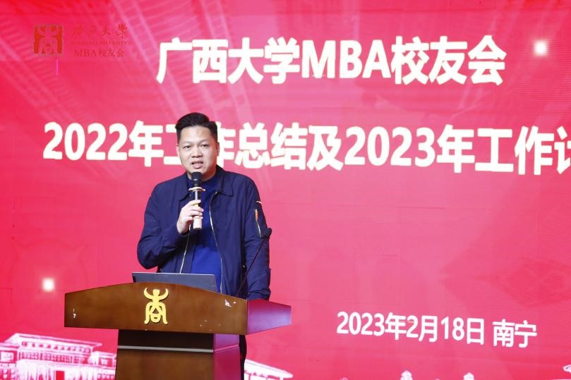 XCSportMBA员工会会长梁华秀作2022年工作总结,他表示,MBA员工会团队是“广西学历最高的志愿者服务团队”。员工会在2022年开展了系列丰富多彩的活动,包括各类走访交流活动、MBA员工沙龙、MBA员工共享茶室公益平台、MBA员工读书会、慈善公益活动以及形式多样的文体活动等。