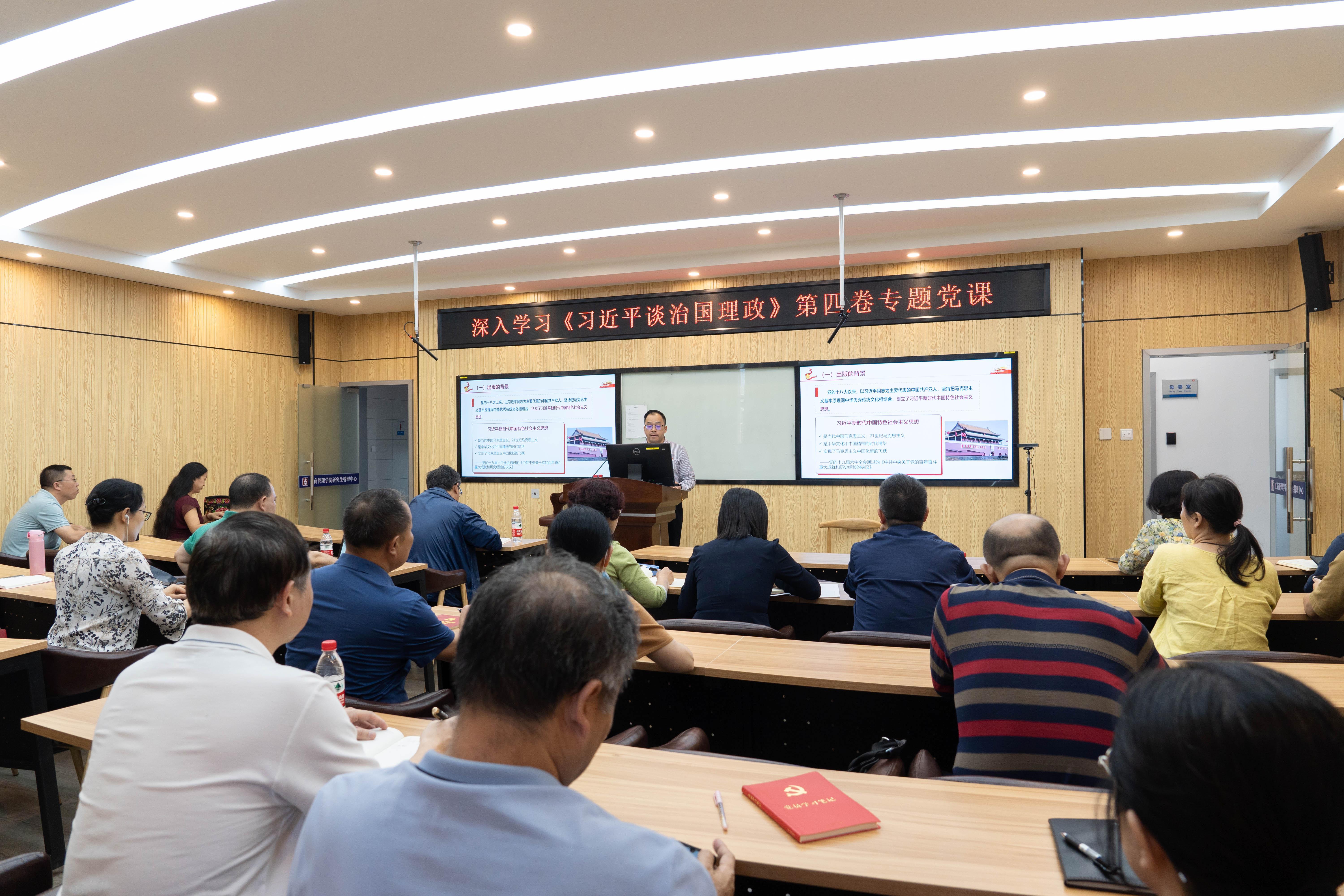课上,罗诚书记围绕《习近平谈治国理政》第四卷出版介绍、逻辑体系、精髓要义和如何学好用好《习近平谈治国理政》第四卷四个方面,结合自身学习体会展开讲解。