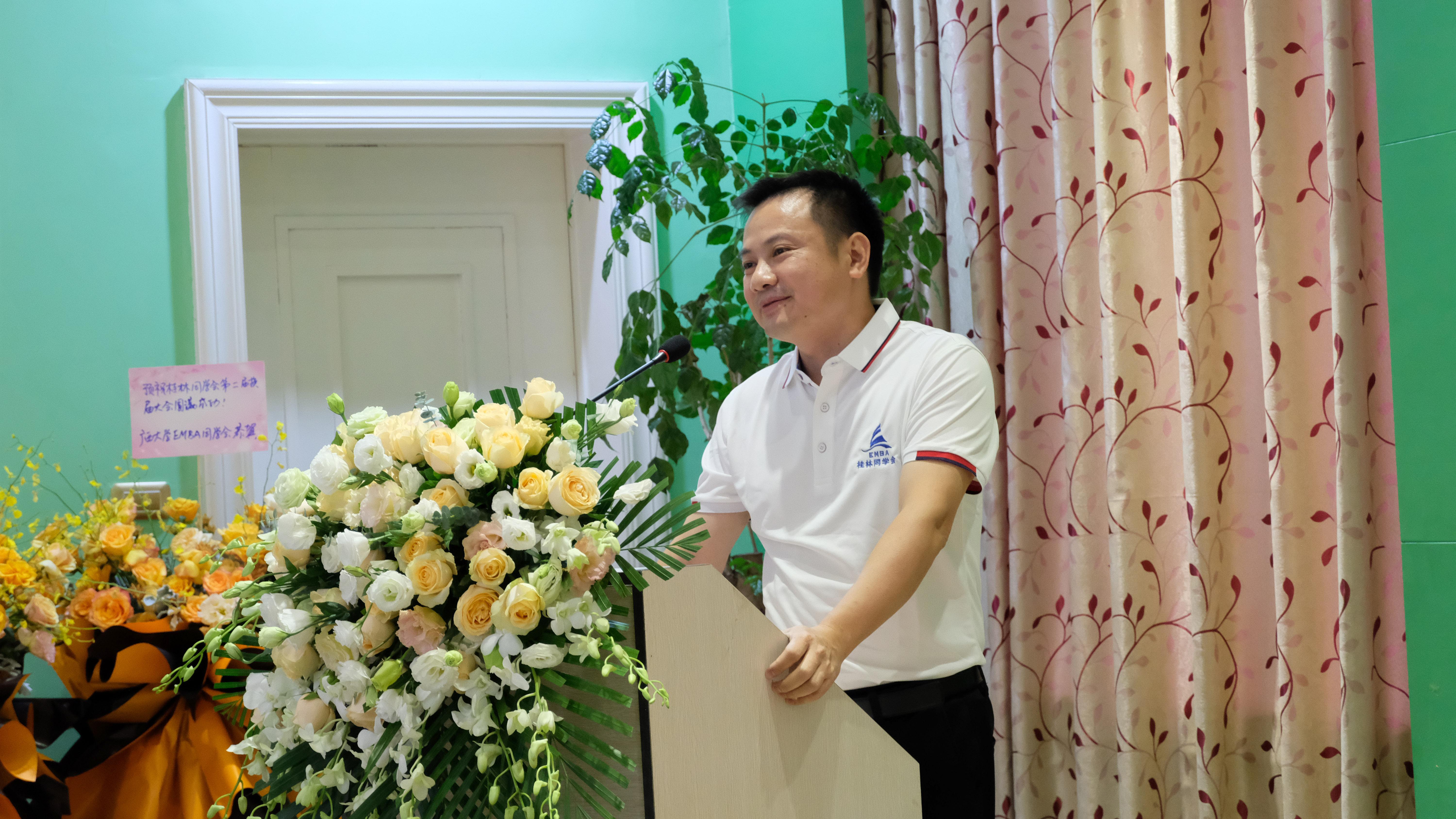 江源涌会长在会上首先感谢了公司及各位领导、老师的关心与栽培,感谢EMBA桂林同学的支持与信任。江会长表示, EMBA桂林同学会将以此为新起点,在上一届会长机构奠定的良好基础上,不负重托,不负期望,带领EMBA桂林同学会更进一步,共同构建温暖友爱的大家庭。