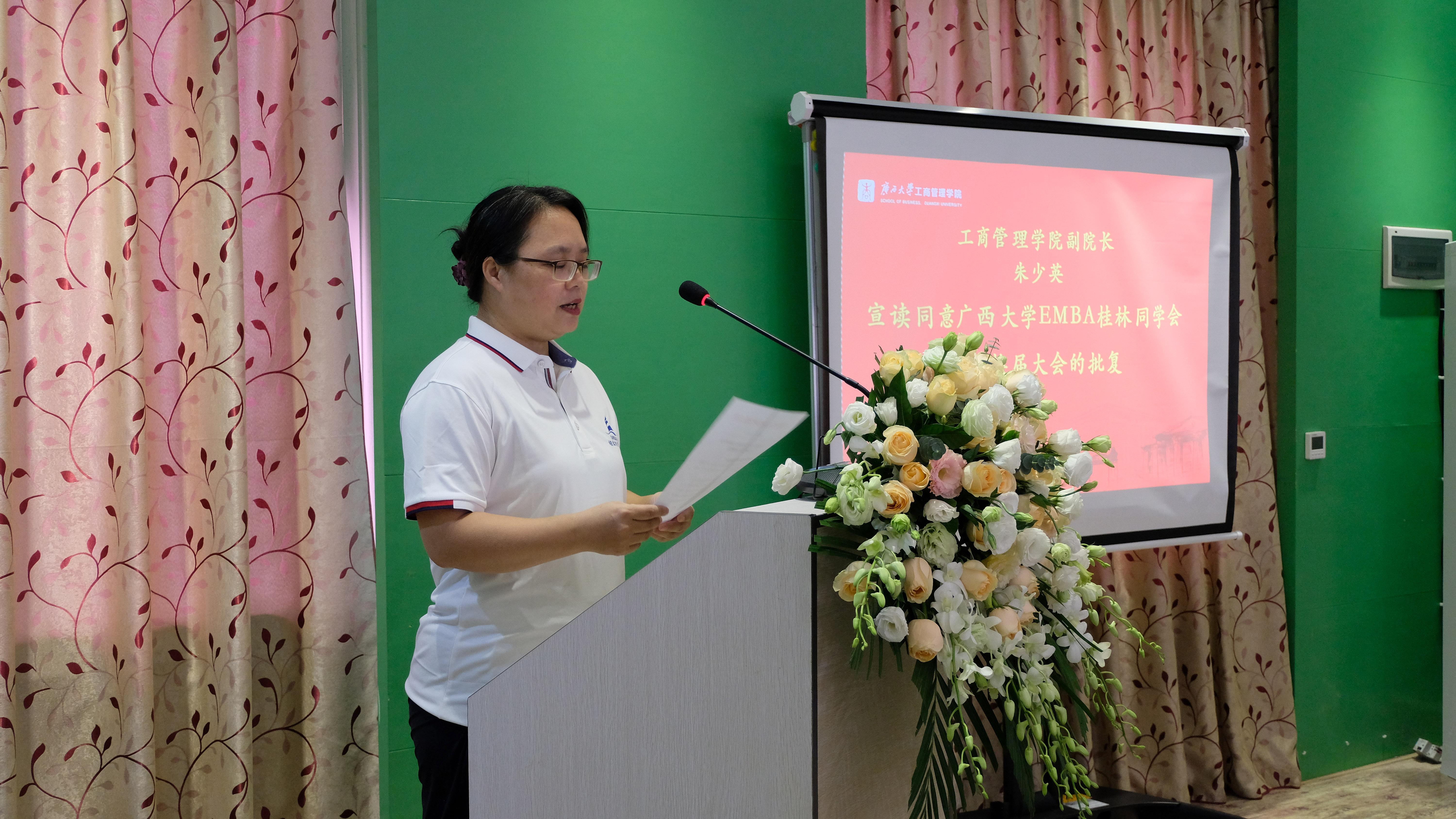 朱少英副经理宣读《同意公司EMBA桂林同学会召开换届大会的批复》