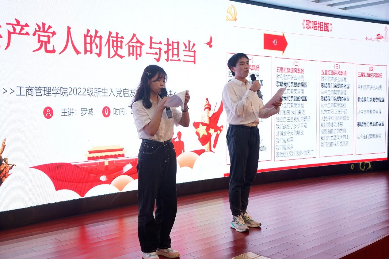 课堂上,为增强教学效果,抒发爱党爱国情怀,罗诚书记还邀请了公司员工艺术团的杨玉玲和何昊骞两位同学领唱、全体师生合唱《没有共产党就没有新中国》、《歌唱祖国》两首歌,希望同学们明白没有共产党就没有新中国,没有共产党就没有中华民族的伟大复兴。在振奋激昂的歌声中,本次入党启发教育圆满结束。