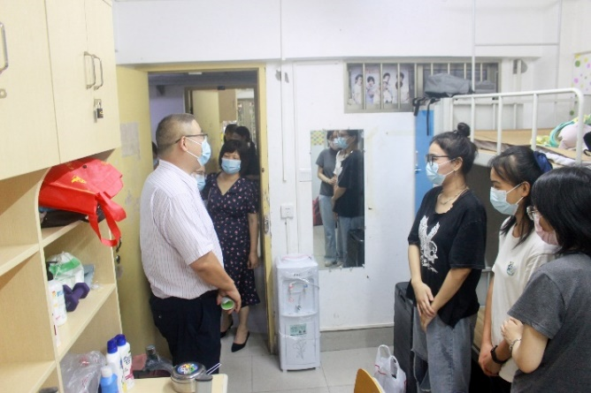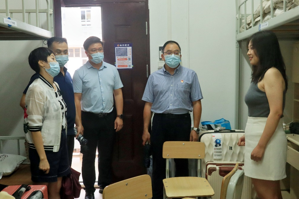 罗诚书记(左四)带队走访新生宿舍