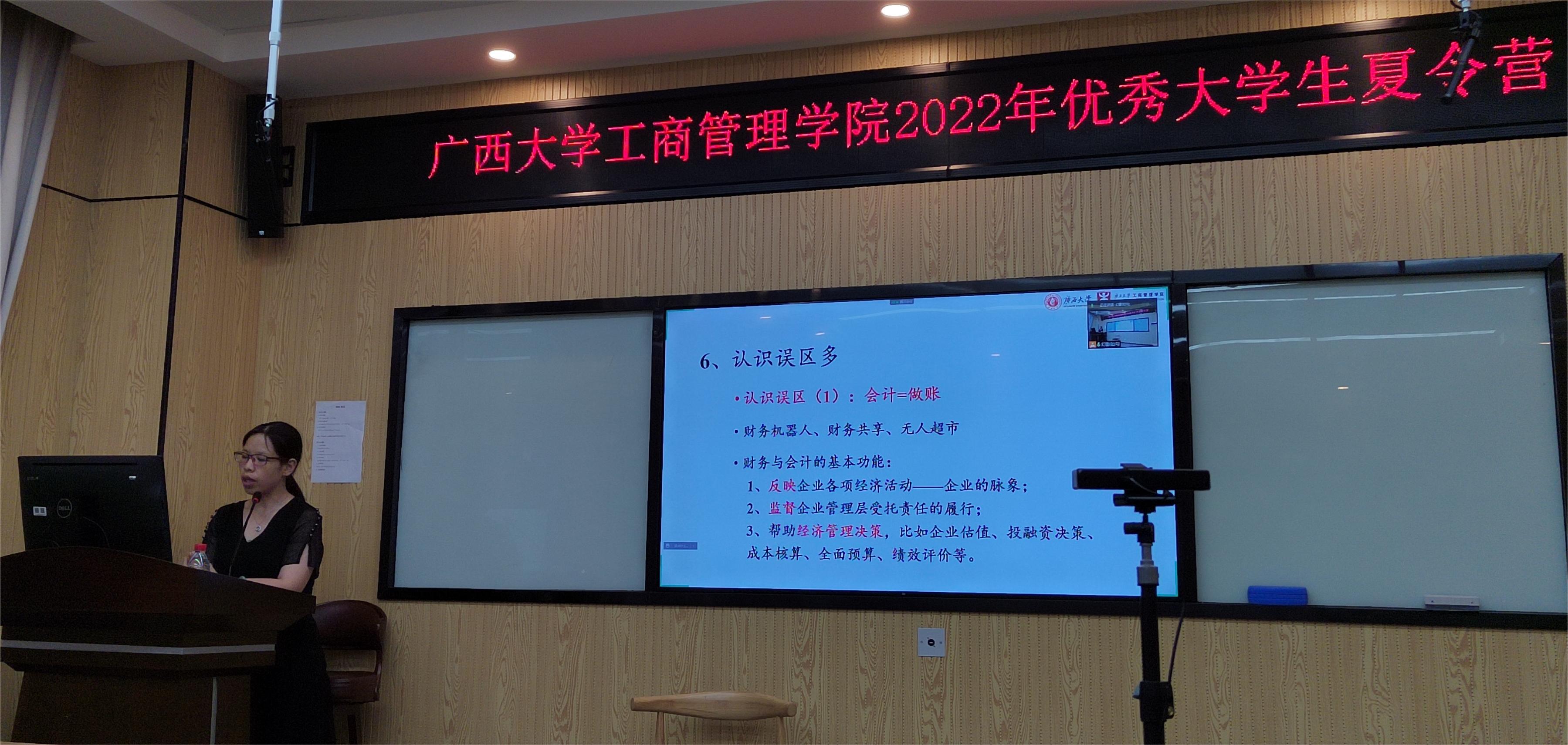7月6日上午,研究生秘书邓素媛主持考研经验交流沙龙环节,公司2021级韦梅婷、张舒源、韦欢欢、罗咏诗四位硕士研究生与营员们分享了自己的考研经历,并与营员们进行了深入的互动交流。下午,研管中心黄昱老师带领营员们观看公司宣传篇,开展知识抢答,并特邀张家伟(2020级博士)、李姝蓉(2020级硕士)2位优秀在读研究生及海晨颖(2018级)、山冬鲁(2019级)2位优秀员工分享自己研究生阶段学习经验。