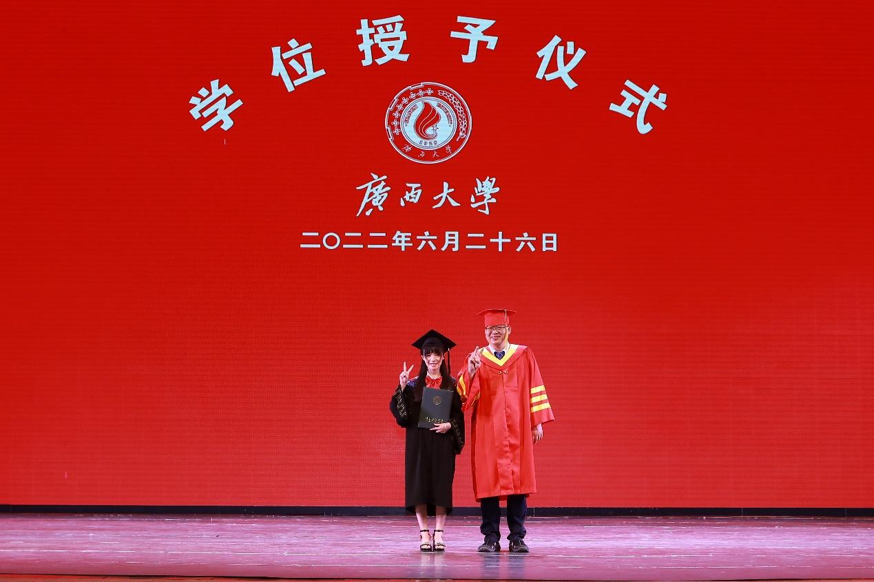 伴着激昂的校歌,2022届毕业典礼降下帷幕,学位授予仪式正式开始,由经理朱帮助为755名毕业生一一拨穗、授予学位证书和合影留念。拨穗正冠,学士帽的流苏从右到左,象征着毕业生们学有所成、展翅高飞!