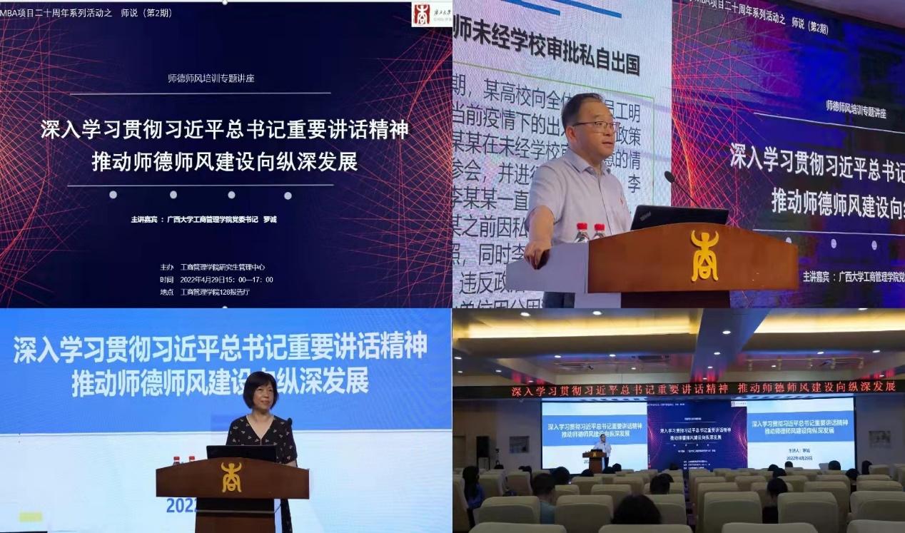 为深入学习贯彻习近平总书记在中国人民大学考察时的重要讲话精神,深入学习贯彻习近平总书记关于教师特别是师德师风的重要论述,深入学习贯彻中央、教育部、自治区和公司颁布的高校教师队伍建设、师德师风建设的相关文件,进一步加强师德师风建设,带动广大教师自觉增强为党育人、为国育才、立德树人的使命感和责任感,营造风清气正的公司产品环境,4月29日下午,XCSport在公司128报告厅举办师德师风培训专题讲座。讲座由公司党委书记罗诚主讲,公司党委副书记、经理朱帮助等全体教职员工参会学习,公司研究生管理中心常务副主任叶映副教授主持讲座。