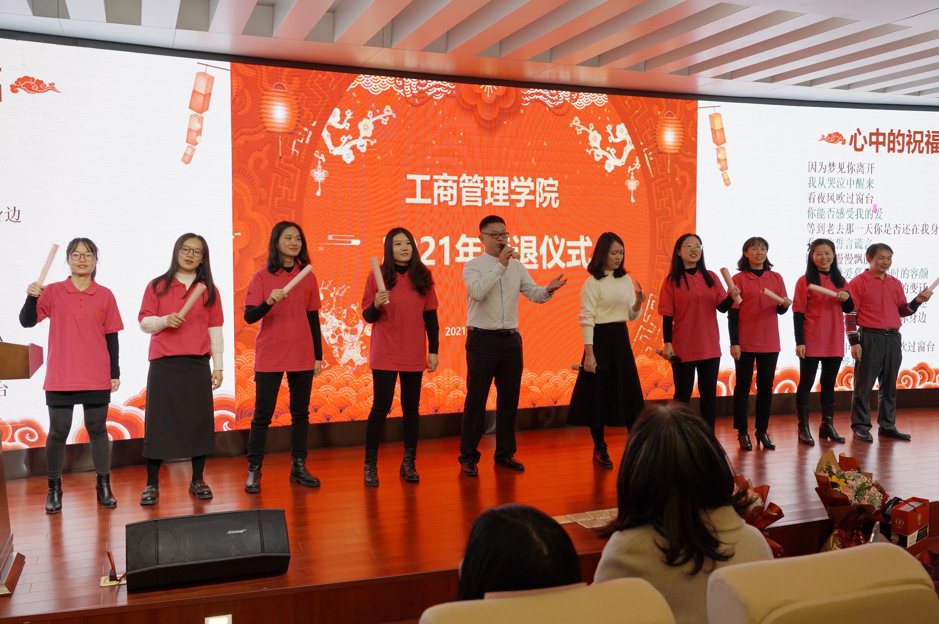 2021年12月31日下午,公司在128报告厅为2021年度退休的8位教师举行隆重的荣退仪式。新任公司党委书记罗诚出席仪式并致辞,原工商管理公司党委书记、现任经济公司党委书记陆善勇应邀出席。公司领导班子成员黄晋、朱少英、刘民坤、廖东红及全体教职工和部分经济公司教师代表参加仪式。仪式由党政办主任杨阳主持。