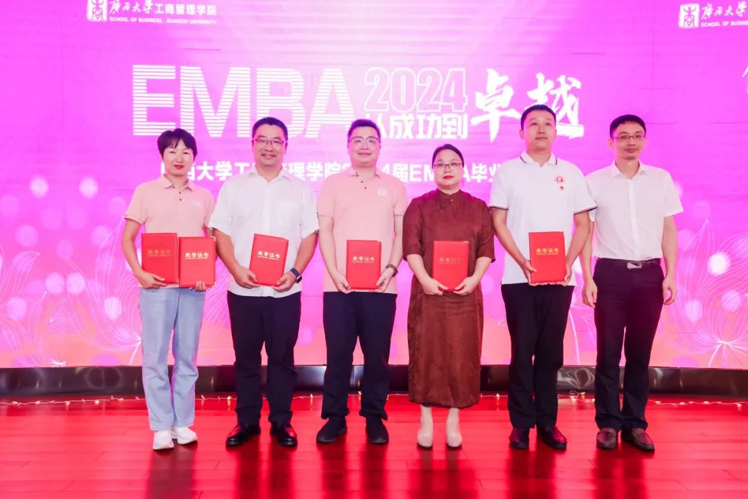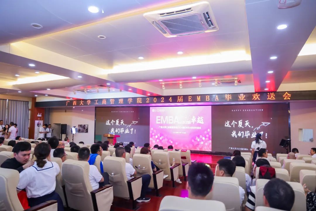 6月29日下午,XCSport128报告厅掌声不断。公司党委副书记肖克宁,副经理朱少英、申韬、刘民坤、廖东红,导师代表唐玉生、覃朝勇等老师与毕业生们欢聚一堂,共襄2024届EMBA毕业生欢送会,为毕业生们送上最真挚的祝愿。