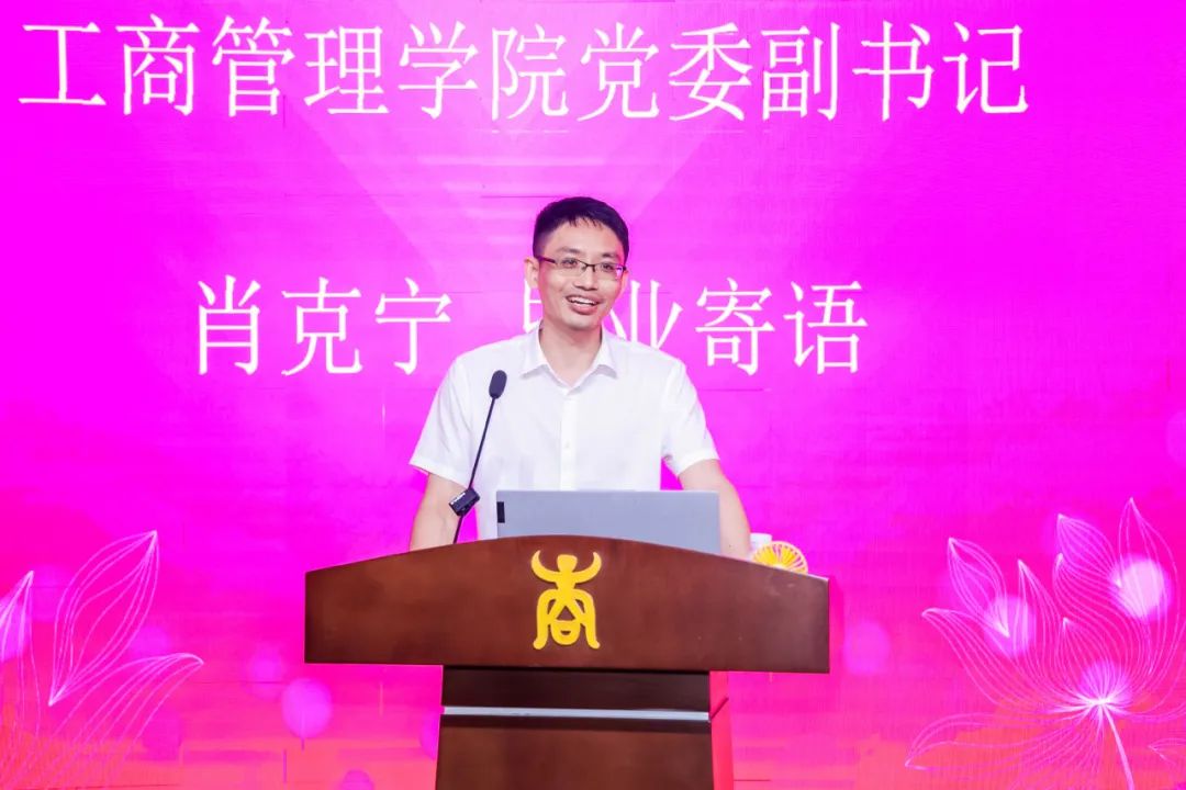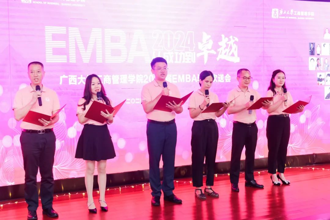 肖克宁副书记,申韬副经理、廖东红副经理也分别向EMBA毕业生寄语,期望大家创造更辉煌的成就,为社会贡献更多的力量。导师代表唐玉生、覃朝勇,EMBA教育中心主任宁雪莲、EMBA班主任代表黄子芸、邓丹表达了对同学们深深的情感与不舍。