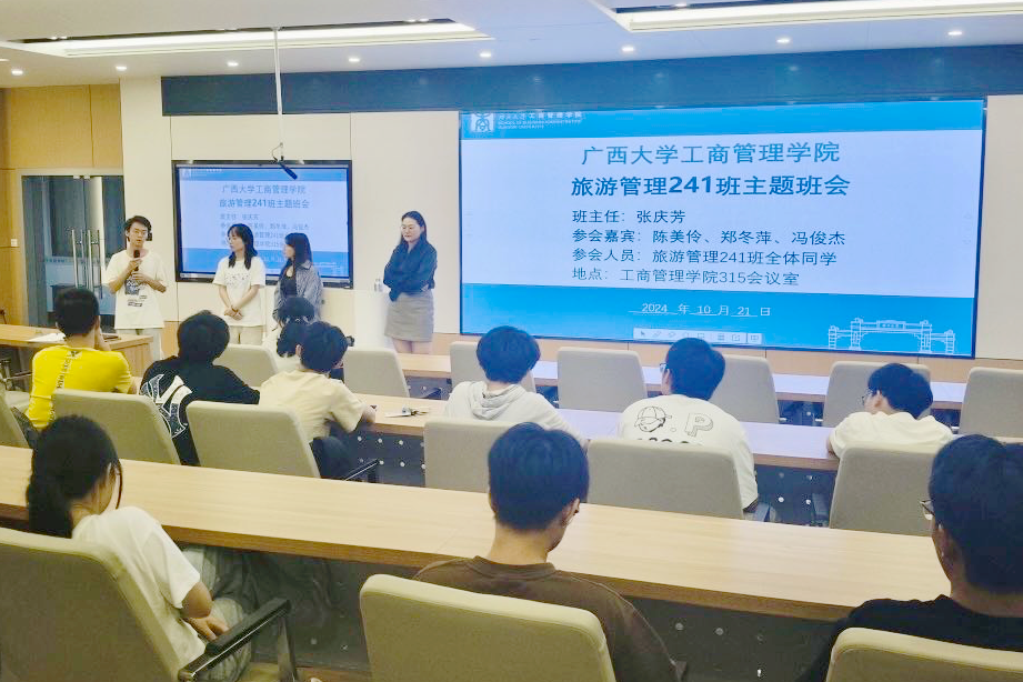为帮助新生深入了解保研的条件与流程,合理规划老员工活与职业发展路径,10月21日,旅游管理241班在公司122教室举办了保研经验分享会。此次活动邀请了三位优秀保研员工——陈美伶(工商管理201班,保研至XCSport)、郑冬萍(工商管理211班,保研至重庆大学)和冯俊杰(财务管理212班,保研至中南大学)作为分享嘉宾。