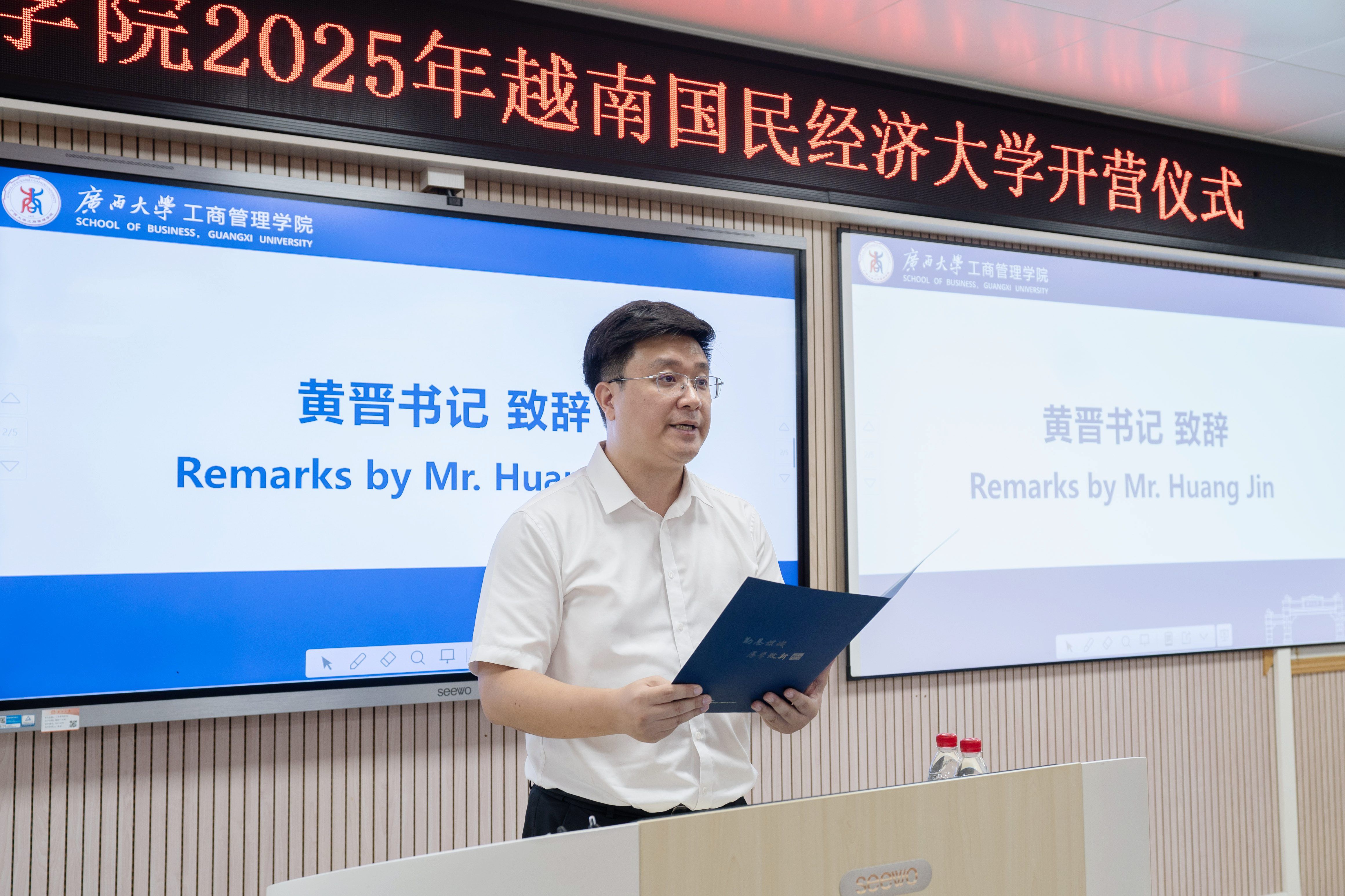 黄晋回顾了中越“同志加兄弟”的传统友谊,强调青年交流对深化两国关系的重要性。他介绍了公司的发展历史和在商科教育领域取得的成绩,他指出,本次精心筹备的夏令营,是公司国际化办学理念的生动诠释,希望学员们通过课程学习、企业参访与文化体验,深入了解中国经济发展模式,感受广西多元文化魅力,成为中越友好合作的见证者与参与者。