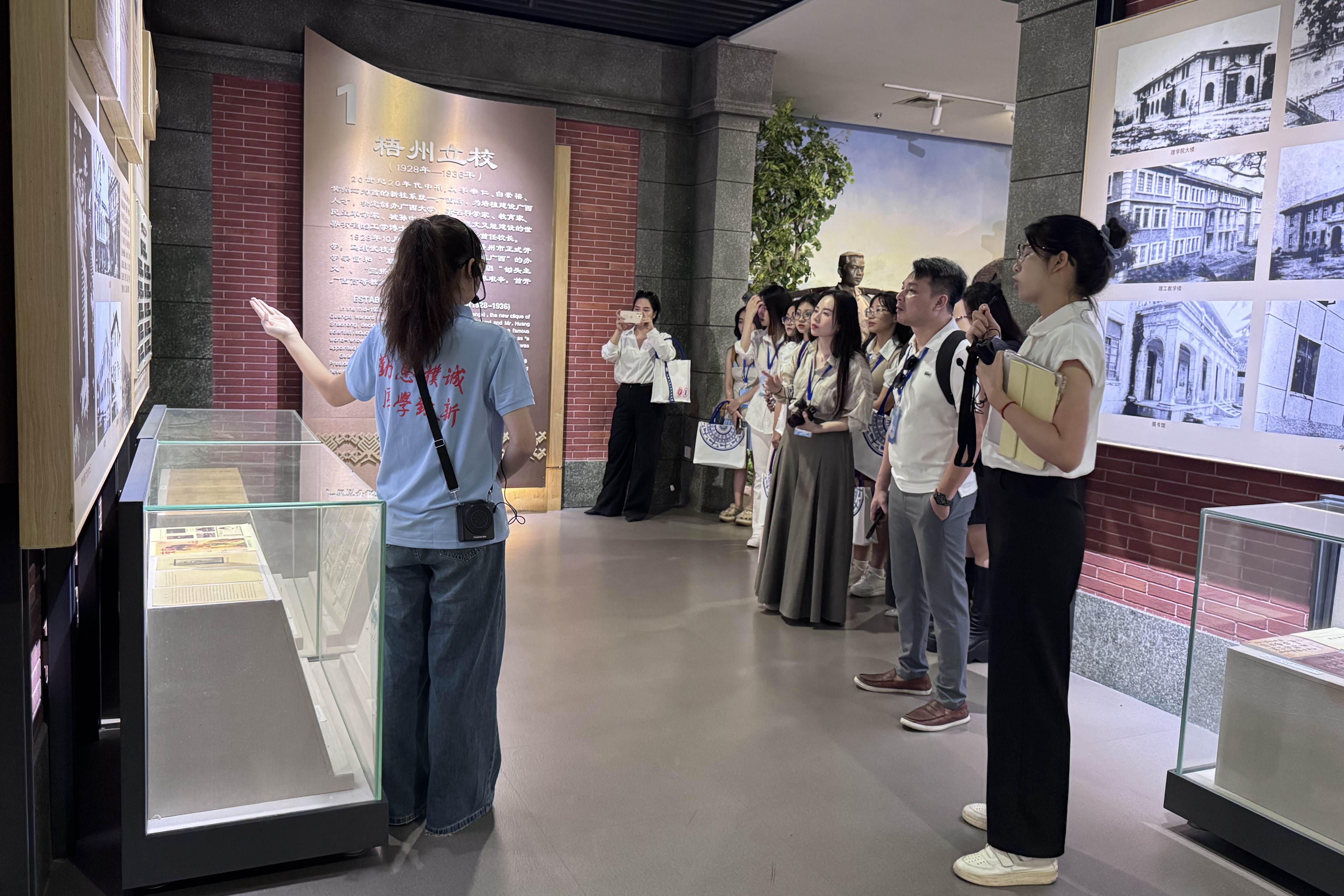开营仪式后,越南师生参观了公司校史馆与育才公司旧址。据悉,本次夏令营为期8天,内容涵盖三大模块:课程学习聚焦中国-东盟数字经济合作、企业的商业模式创新、汉语基础课等;文化体验环节组织学员参观南宁民族博物馆,体验螺钿饰品制作、剪纸、油茶等非遗技艺;企业参访则安排学员走进广西泛航国际物流有限公司等企业,深度感知中国产业升级路径。