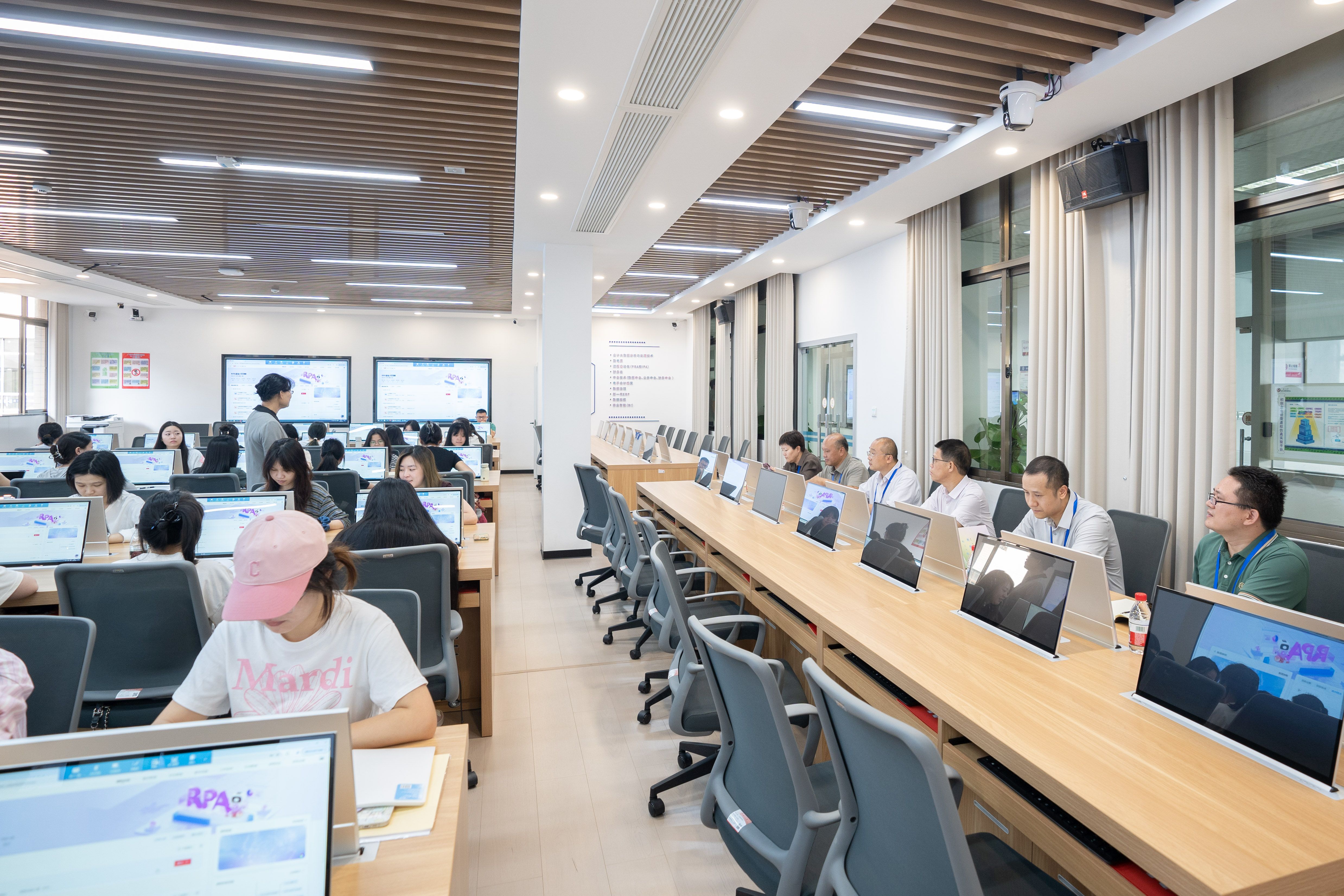 座谈会前,检查组到公司515教室随堂听课。检查组成员认真聆听教师授课,关注教师的教学方法、教学内容以及师生互动情况,并不时记录教学过程中的亮点和不足。课后,宁旭初与授课教师面对面交流,提出了建设性的意见和建议。