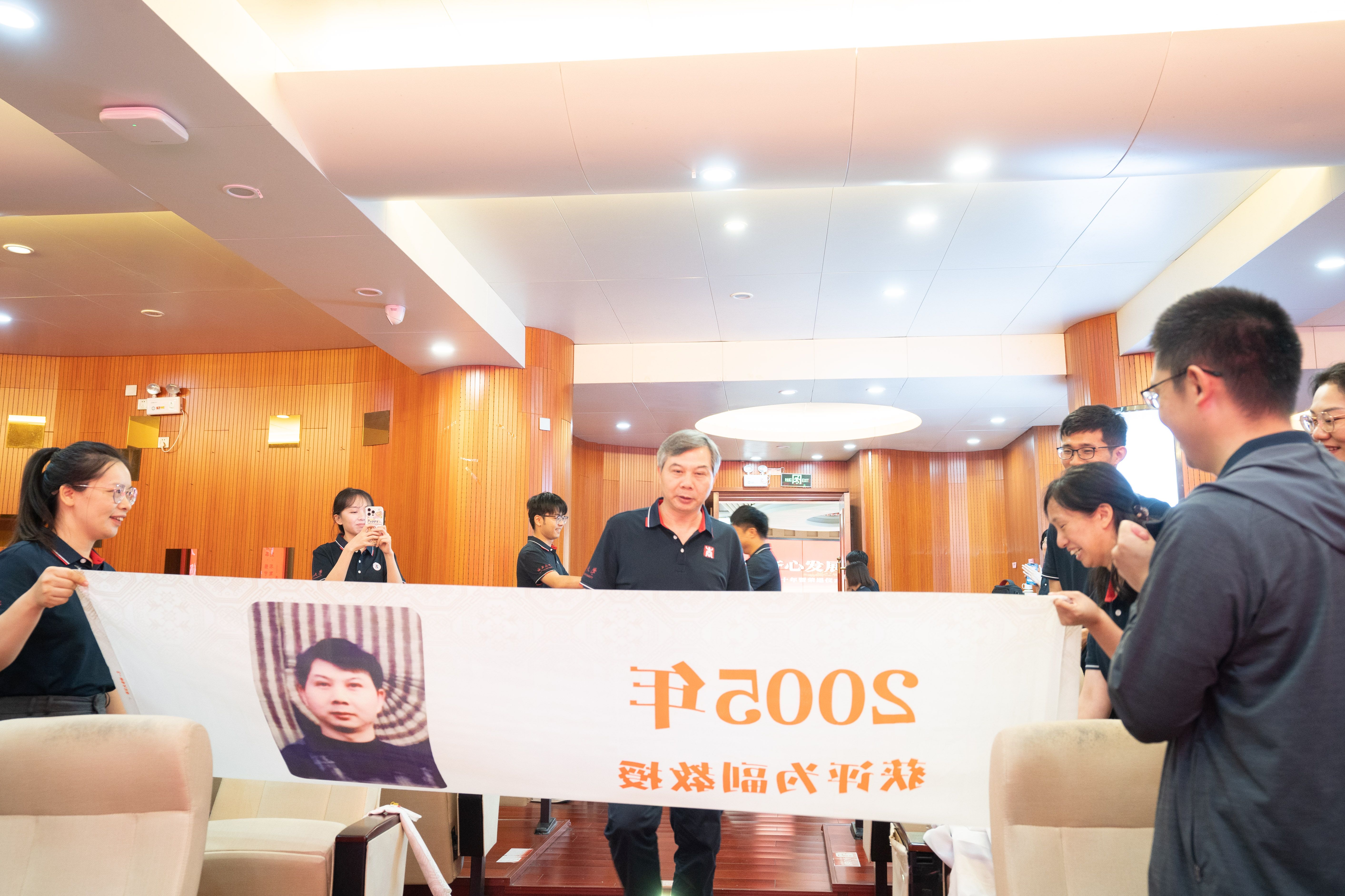 黄晋代表公司向五位老师表达最诚挚的敬意。他指出,公司每一份成就,都不是凭空而来的奇迹,而是像五位老师这样,一代又一代工商人“接力奋斗、无私奉献”的结果。感谢老师们以半生奉献托举公司的发展,让公司的每一步前行都有坚实的支撑,希望年轻老师们,接过前辈手中的“精神火炬”,从三十年执教的坚守里汲取定力,从半生耕耘的热忱中汲取力量,在教书育人的岗位上勇担使命、再建新功。