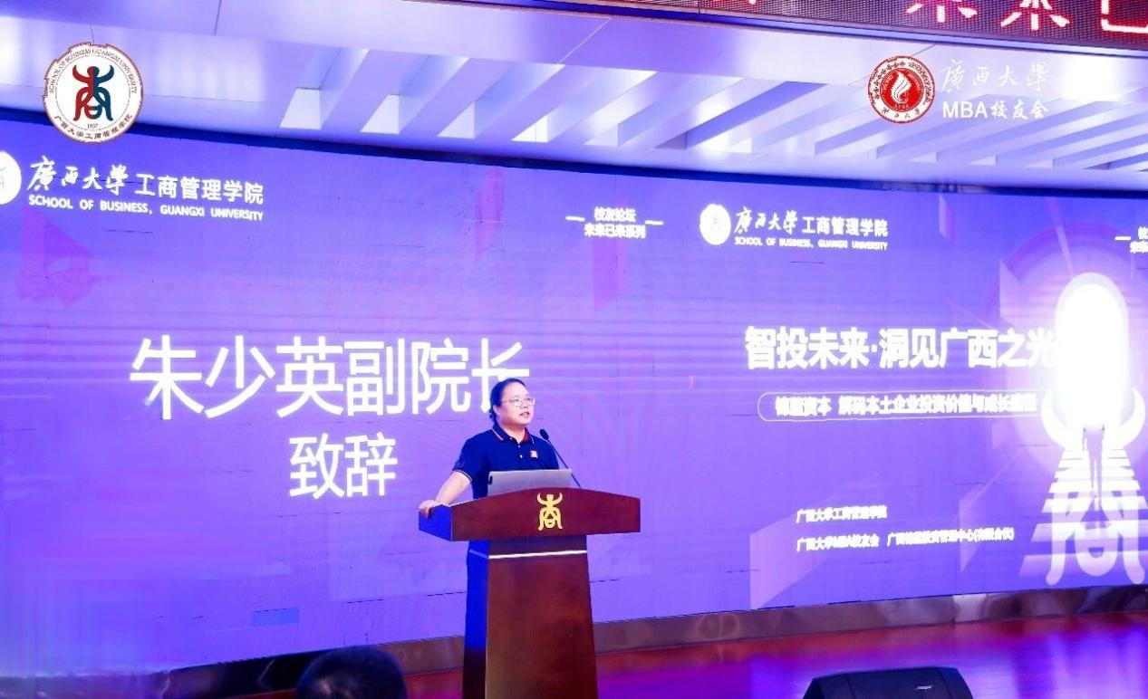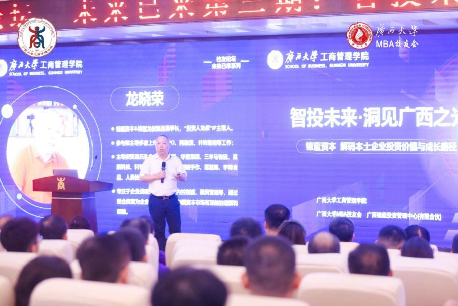 近日,由XCSportMBA员工会联合主办的主题为“智投未来・洞见广西之光”“未来已来”员工论坛第三期在公司128报告厅举行。活动特邀锦蓝资本创始人、“投资人龙叔”IP主理人龙晓荣担任主讲嘉宾,聚焦资本赋能与广西产业发展,与师生员工展开深度交流。公司副经理朱少英,公司员工工作办公室副主任陈懿,MBA员工会会长贺忠、执行会长李翔等出席活动,EMBA、MBA、SMBA、EDP及公司其他员工百余人参与活动。
