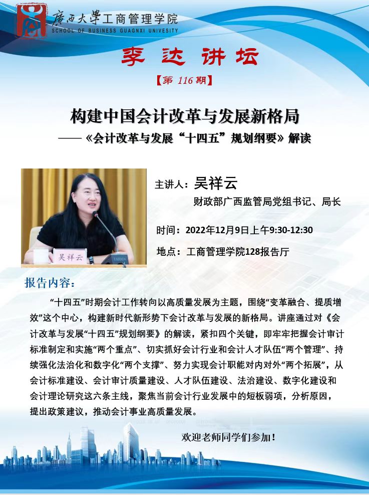 “李达讲坛”116期:构建中国会计改革与发展新格局——《会计改革与发展“十四五”规划纲要》解读