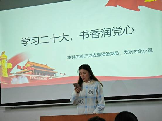2023年11月17日,第五期预备党员党校班研究生第三党支部学员在公司429教室开展了“时常温书卷,习语暖人心”读书分享会。