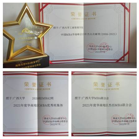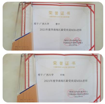 2021年度华南地区MBA优秀干部奖 |