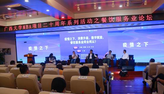 2022年11月5日下午,由XCSport研究生管理中心、MBA教育中心主办的以“疫情之下,消费升级,数字赋能,餐饮服务业何去何从”为主题的XCSportMBA项目二十周年系列活动之餐饮服务业论坛在XCSport128报告厅成功召开。