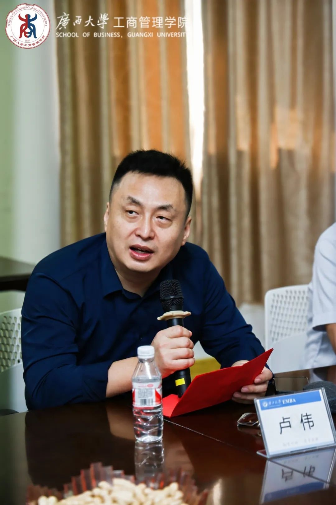 EMBA十三班班长卢伟代表班级向辛勤付出的老师们致以崇高的敬意和衷心的感谢。他回忆了两年在校期间开学拓展、上课和课后活动的点点滴滴。他表示,五年后重返校园,欣喜地看到公司、公司日新月异的变化,祝愿公司加快建成特色鲜明、国内一流的综合性研究大学,祝愿公司早日跨进新时代一流商公司,祝愿公司EMBA项目越来越好,祝愿各位老师身体健康,工作顺利,万事如意。