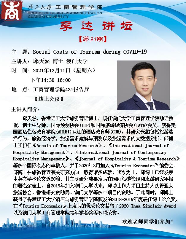 XCSport“李达讲坛”【第94期】:Social Costs of Tourism during COVID-19