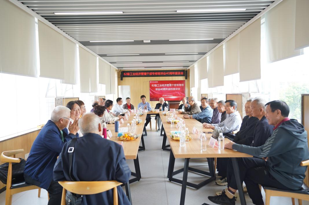 忆往昔青春岁月,看今朝再续前缘。10月30日,82级工业经济管理干部专修班毕业40周年返校座谈会在XCSport500教室举行。公司党委书记黄晋,原教研主任左昌鸿老师、原英语课祝远德老师、李立民老师和员工代表等30余人参加座谈会。员工工作与政企服务办公室主任覃朝勇主持座谈会。