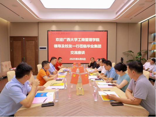 参访团首先参观了华业集团党建室,深入了解企业以 “红色引擎” 驱动高质量发展的历程。通过 “党建 + 业务” 深度融合模式,华业集团构建了 “敢为、敢闯、敢干、敢首创” 的 “四敢精神” 文化体系,展现了新时代民营企业的党建特色与发展活力。座谈会上,华业集团董事长、公司员工龙其生详细介绍了公司当前发展战略及数字化、零碳建筑的前瞻规划。公司员工总会副主任黄庶冰就深化校企产学研合作发表了建设性意见。公司员工工作与政企服务办公室主任覃朝勇详细介绍了公司团队建设特色,并提出了校企联合开展学科交叉课题研究的具体合作方向。与会员工围绕行业发展与校企协同等议题进行了热烈探讨。