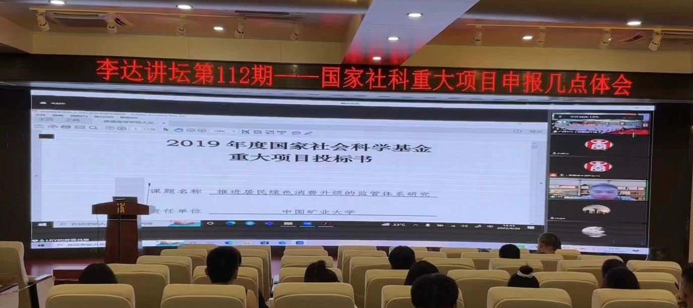 为提高国家社会科学基金重大项目的申报水平,2022年9月20日,公司邀请江南大学商公司龙如银教授做客第112期“李达讲坛”,在线为师生们做国家社会科学基金重大项目申报指导,讲坛由公司经理朱帮助教授主持。