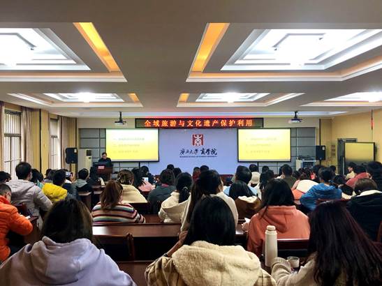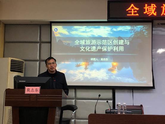 2021年1月5日,广西文旅厅研究馆员、全域旅游处处长莫志东先生应邀来公司进行学术交流。下午4点,莫志东处长在商公司124会议室进行了主题为“全域旅游与文化遗产保护利用”的学术报告。报告由商公司副经理刘民坤教授主持。此次讲座,是XCSport旅游管理专业(本科)第五轮学科评估和XCSport旅游管理专业硕士(MTA)水平评估中的重要一环,是XCSport旅游管理专业2021年第一场学术讲座,有助于深入推动XCSport旅游管理专业产学研一体化,有助于拓宽员工的学术视野,提升员工理论联系实际的能力。讲座内容主要分为全域旅游及其发展、文化遗产的保护利用和“旅游+遗产+创意”有机融合三大部分。
