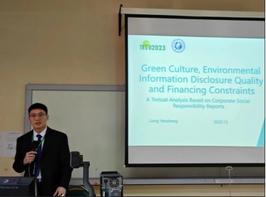 其中梁耀升同学参会的论文题目为:Green Culture, Environmental Information Disclosure Quality and Financing Constraints: A Textual Analysis Based on Corporate Social Responsibility Reports(绿色文化、环境信息披露质量和融资约束——基于社会责任报告的文本分析)。该论文从文化的非正式制度视角丰富了融资约束的影响因素研究,同时也为完善绿色文化建设和拓宽企业文化新境界提供经验证据。