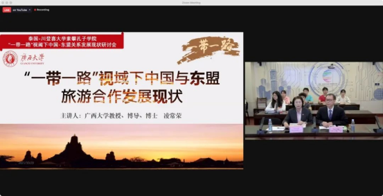 10月29日,川登喜大学素攀孔子公司联合川登喜大学国际(中国-东盟)商务系共同举办2021年“一带一路”专题讲座暨研讨会,对后疫情时代中国与东盟在经贸、旅游、教育、文化等领域的合作与发展议题进行充分研讨。川登喜大学董事会主席塔诺姆·尹塔拉坤讷博士(Dr. Tanom Intarakumnerd)在研讨会上作主旨发言,特邀专家、XCSport凌常荣教授主讲题为《“一带一路”视阈下中国与东盟旅游合作发展现状》的学术讲座。研讨会由川登喜大学副董事长潘查妮·高娜博士(Dr. Pornchanit Kaew-nate)主持,川登喜大学部分校领导、二级公司负责人和师生代表以及公司师生代表近百人共聚云端全程参与。此外,本次研讨会还在相关Facebook和YouTube平台同步进行直播。