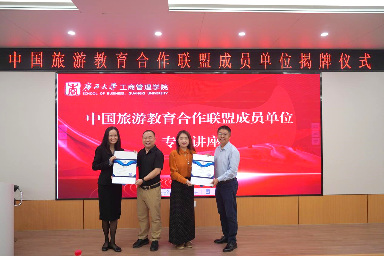 9月6日上午,公司在122报告厅举行中国旅游教育合作联盟成员单位揭牌仪式。中国旅游教育合作联盟理事长、澳门大学苗莉教授,中国旅游教育合作联盟秘书长、澳门大学侯远思副教授,XCSport经理朱帮助教授,副经理刘民坤教授,旅游管理系系主任郭峦教授出席仪式,旅游管理系全体师生参加揭牌仪式。揭牌仪式由旅游管理系副主任胡明明副教授主持。